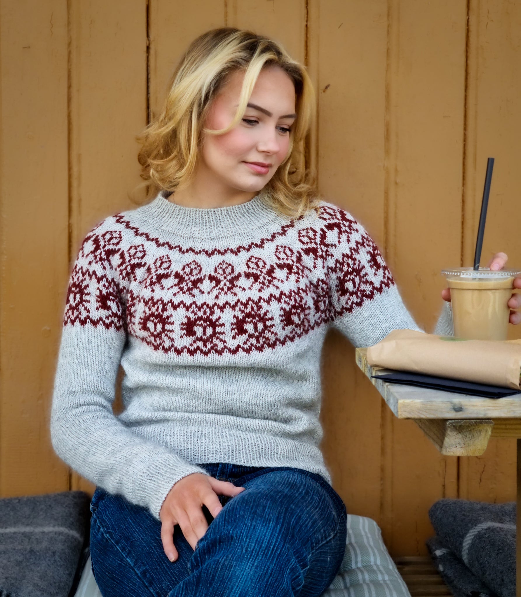 Beaivi Mohair er en myk og lekker utgave av den populære Beaivi genseren fra boken min Sápmi strikk.