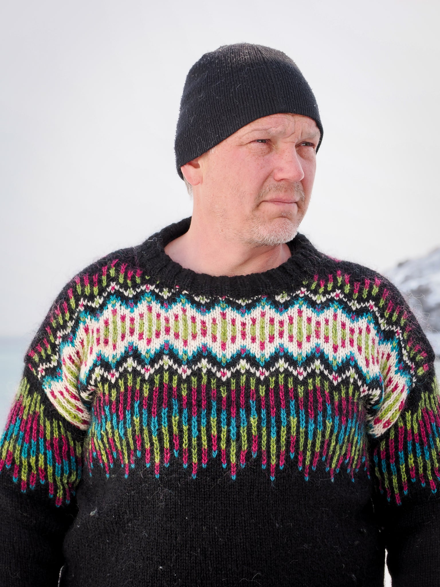 Idja strikkes nedenfra og opp. Genseren har bærestykke med isydde ermer og