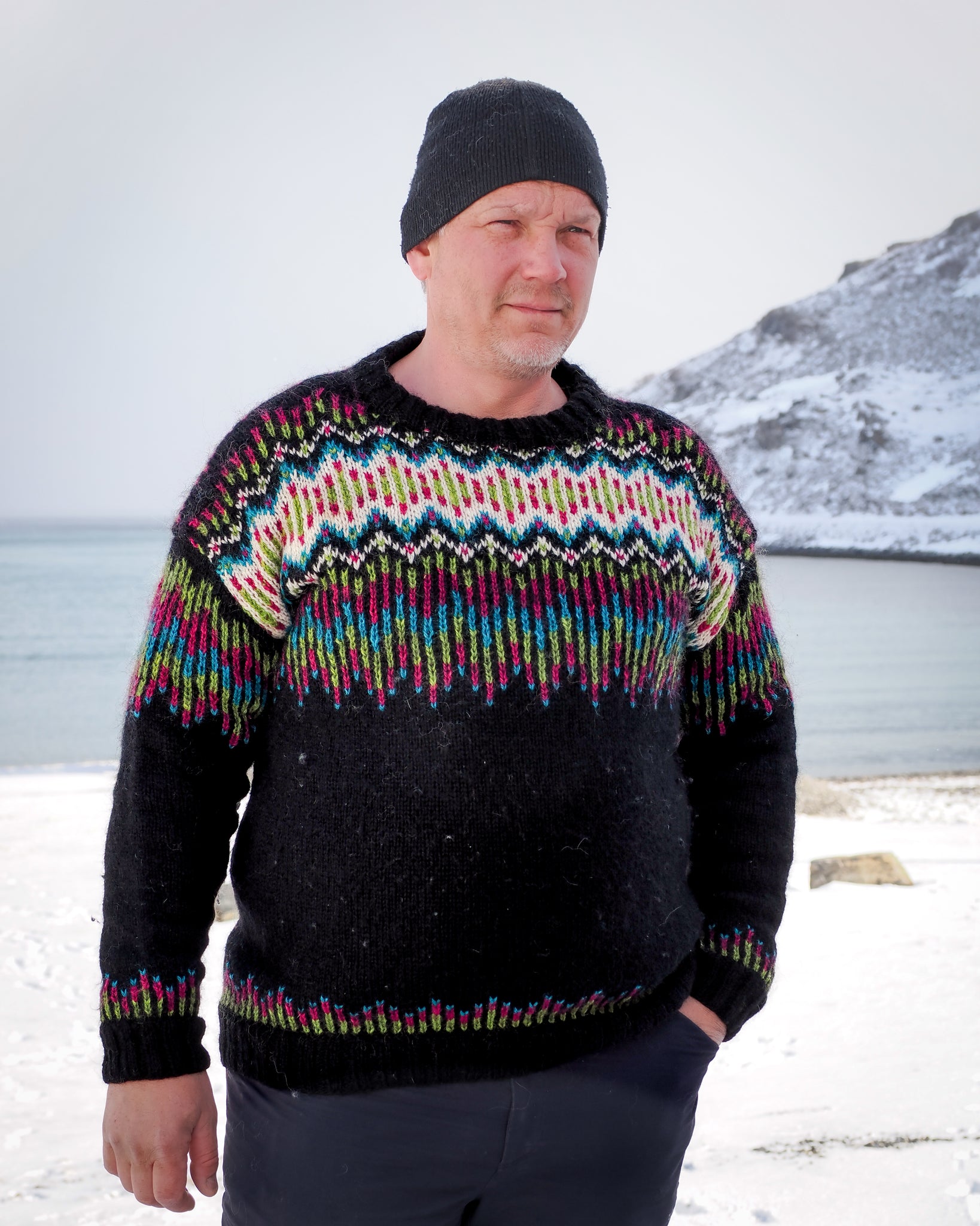 Idja har i seg polarnattens farger, med nattsvart himmel, nordlysets fargespill og